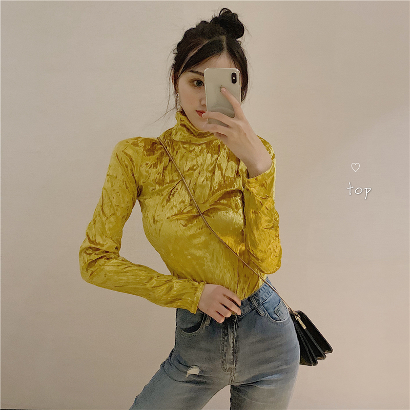 chic港味上衣女秋冬新款絲絨百搭保暖加厚純色修身顯瘦T恤打底衫