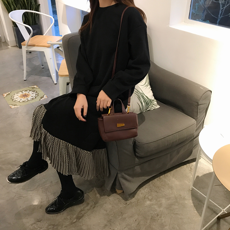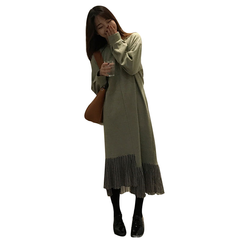 / 秋季2018新款韓版中長款chic寬松拼接不規則連衣裙長裙學生裙子女