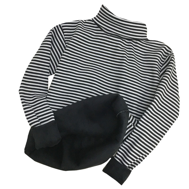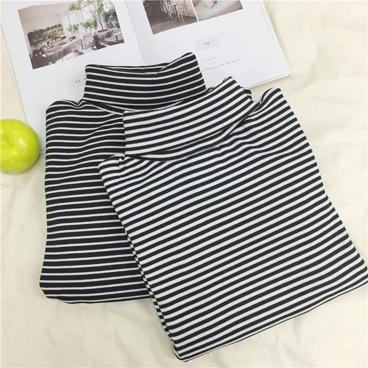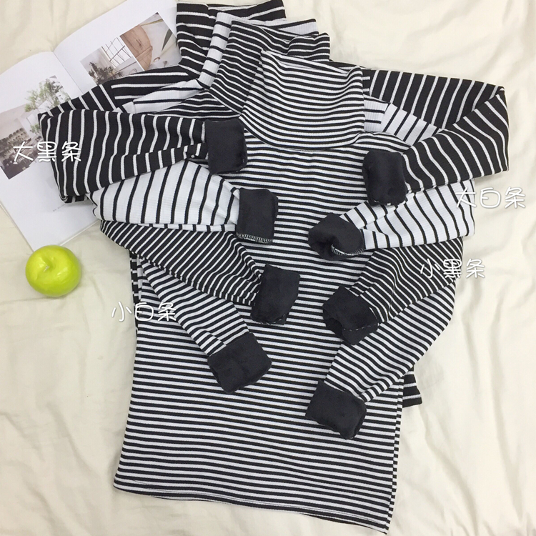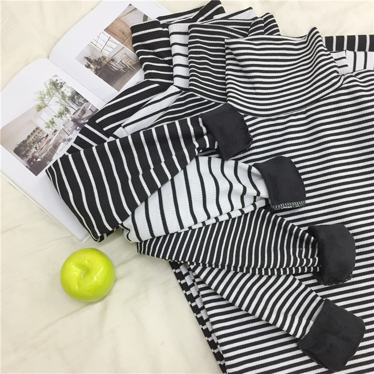 / 秋冬韓版復古修身顯瘦條紋高領長袖加絨加厚打底衫T恤上衣學生女