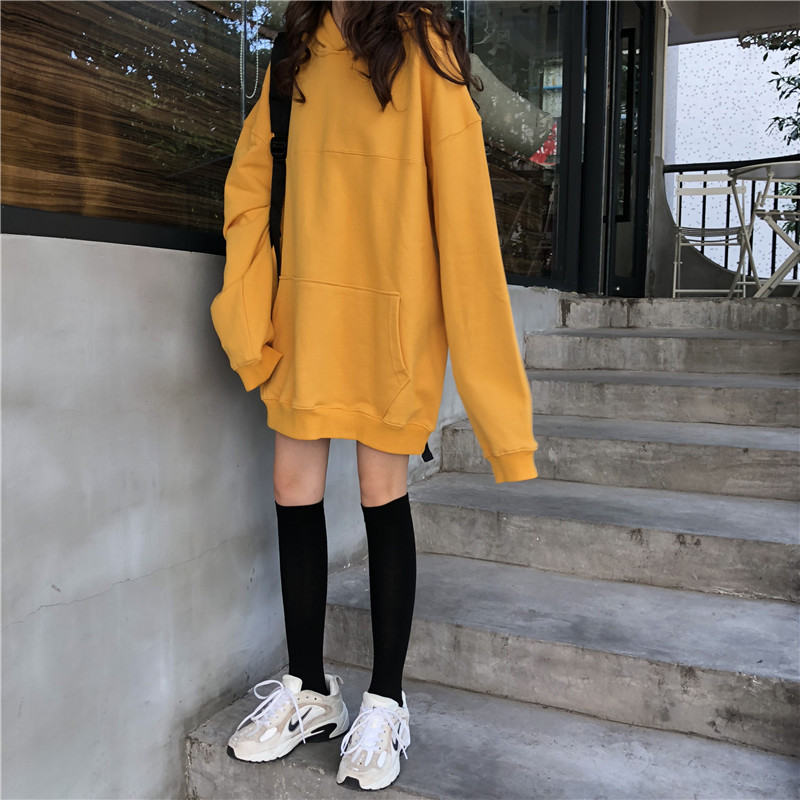 / 2018新款秋冬韓版寬松純色中長款連帽加厚加絨超火衛衣上衣外套女