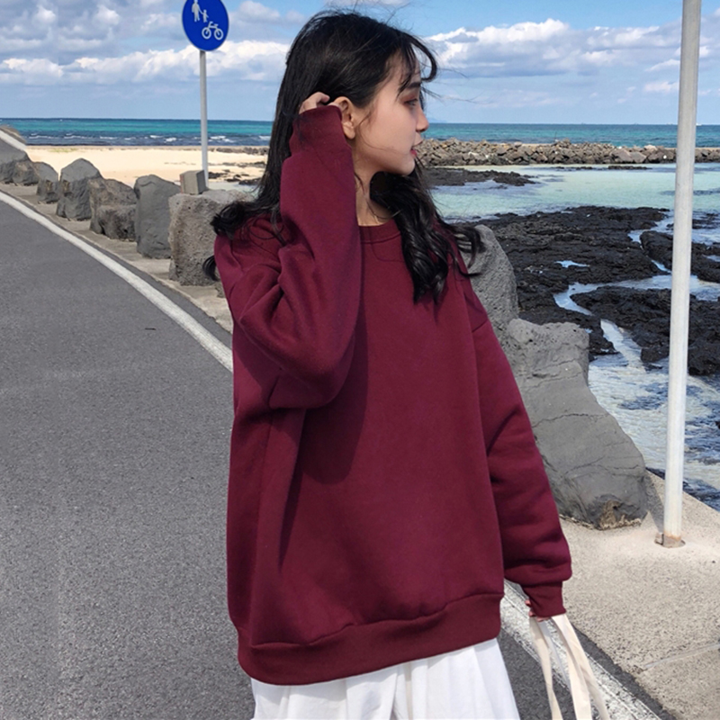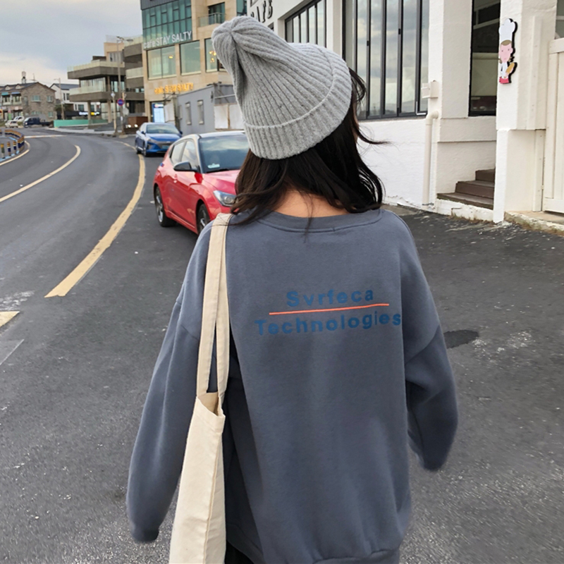 復古寬松字母印花衛衣2018新款女秋冬裝圓領加絨時尚外套休閑上衣