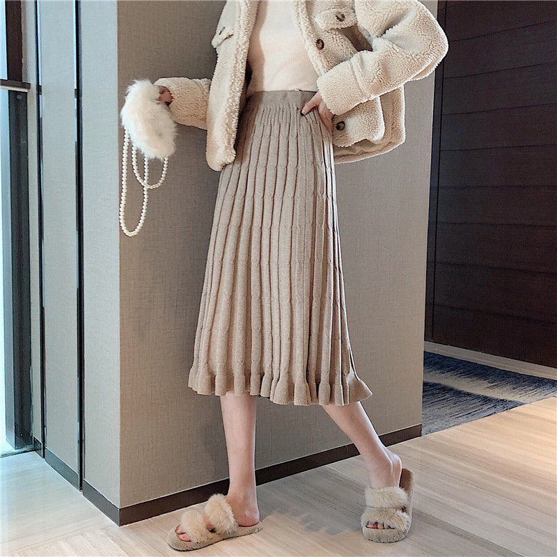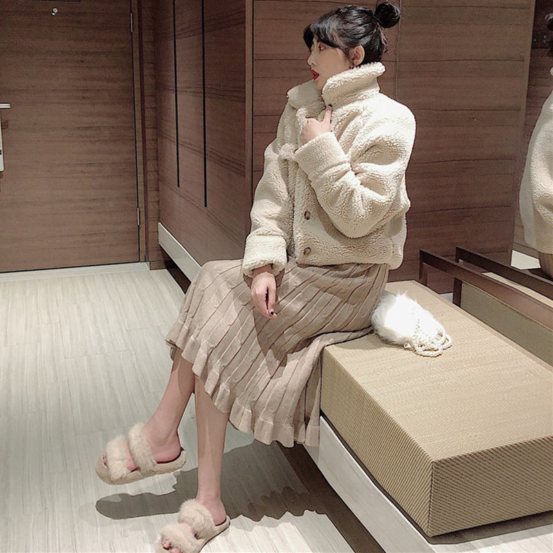 御姐套裝女秋冬新款羊羔毛外套修身針織打底衫高腰顯瘦百褶半身裙