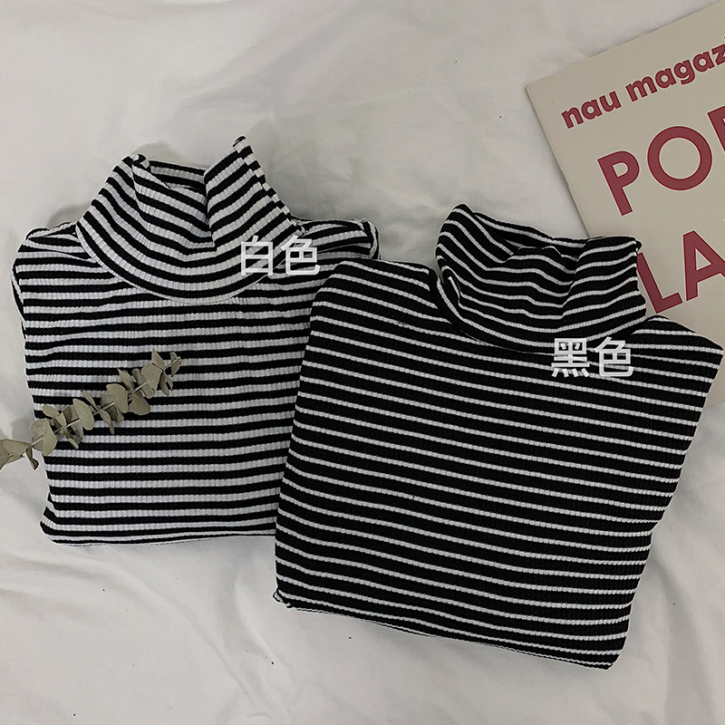 chic高領條紋打底衫女秋冬裝2018新款韓版學生修身長袖T恤上衣潮