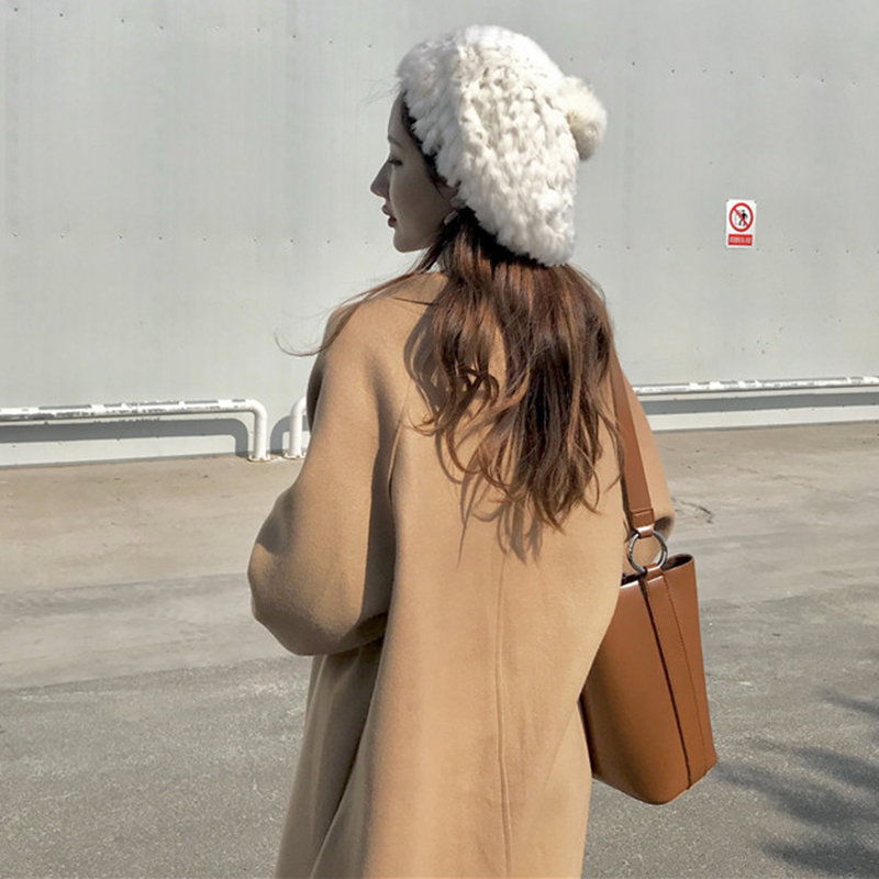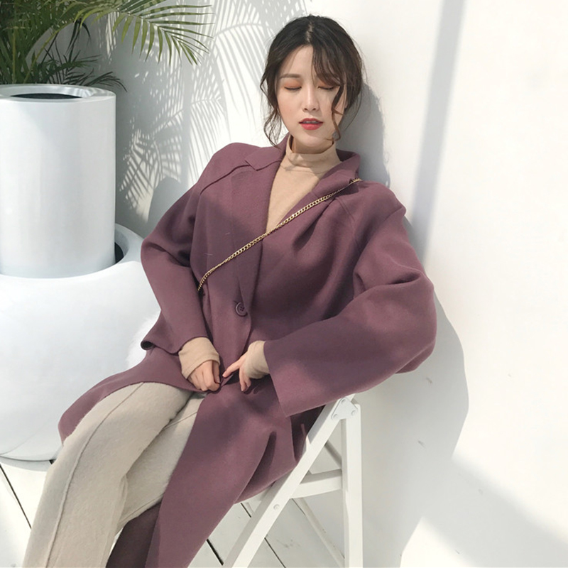 chic流行呢子長袖大衣女冬裝2018新款韓版寬松翻領中長款毛呢外套