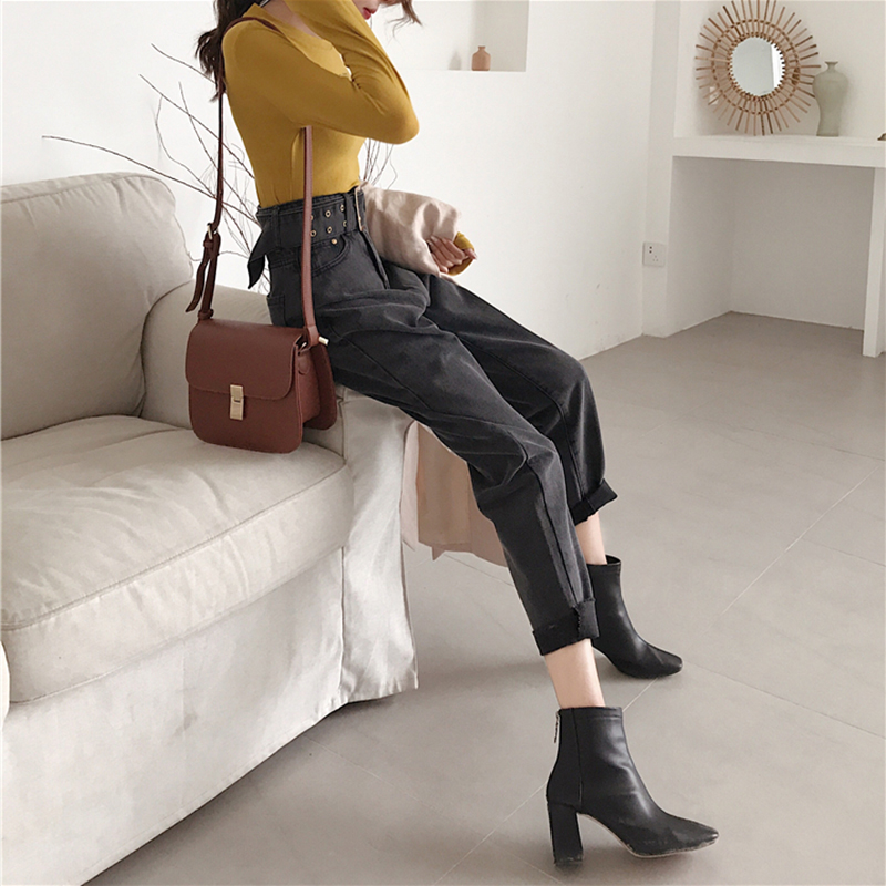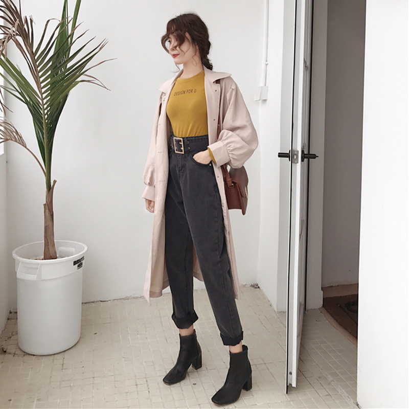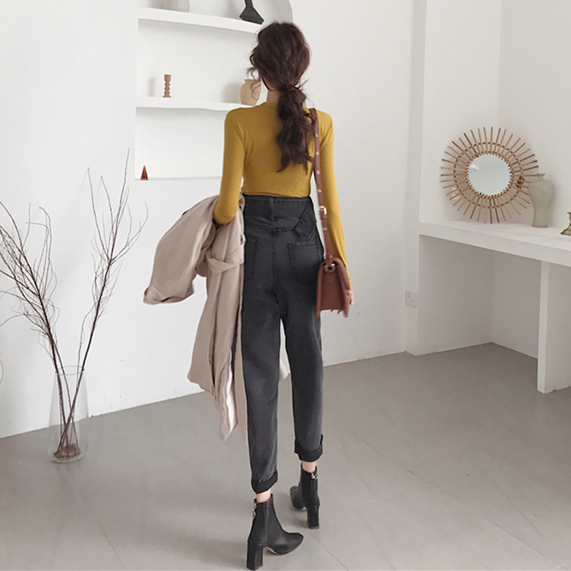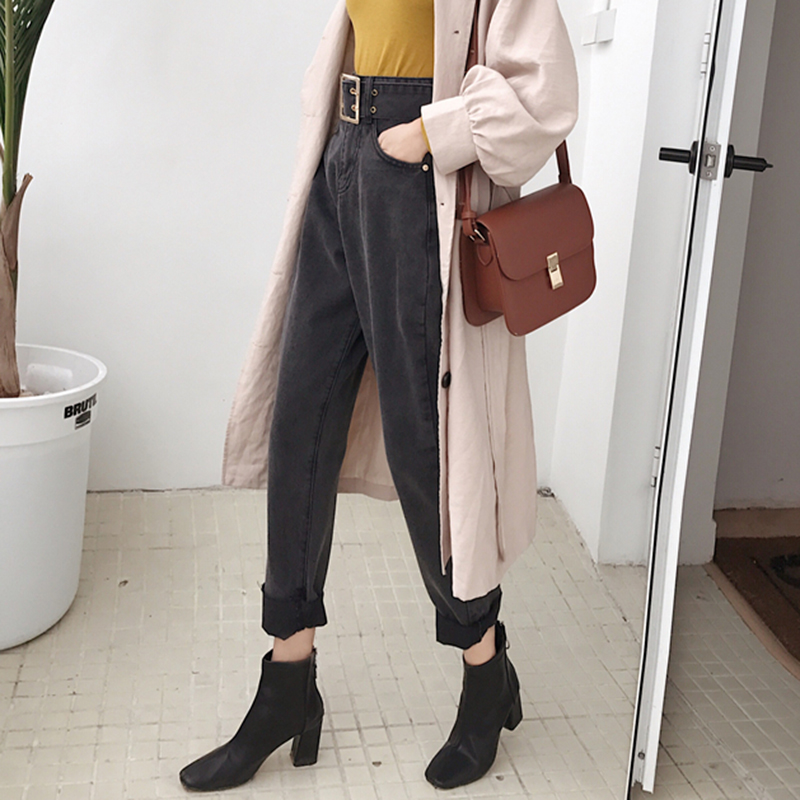 / 怪味少女高腰顯瘦牛仔褲秋冬裝新款學生復古休閑寬松哈倫老爹褲子