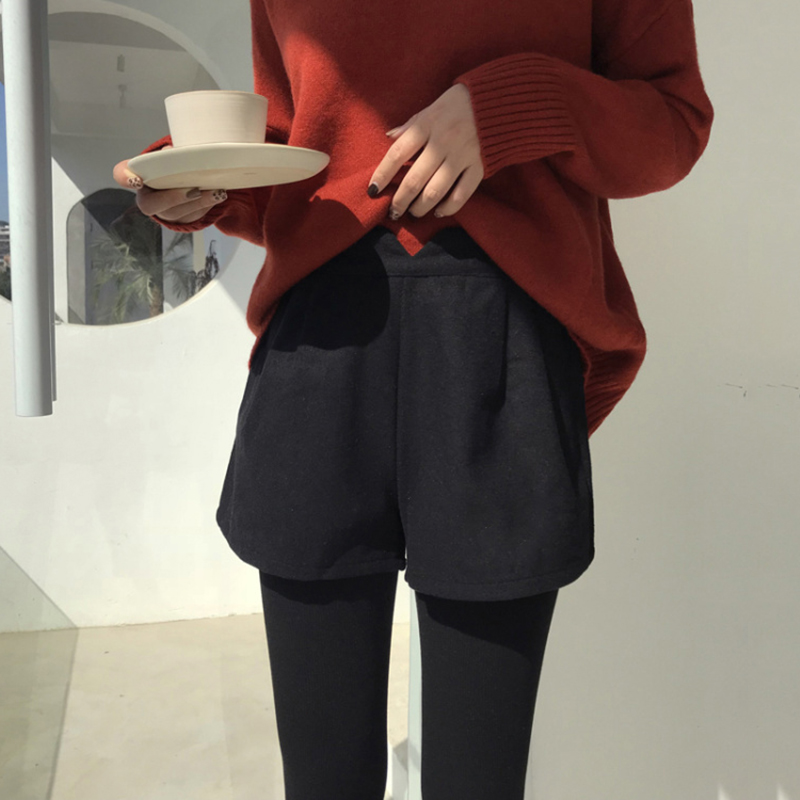 / 學生休閑毛呢短褲女秋冬裝2018新款韓版百搭高腰寬松顯闊腿靴褲子