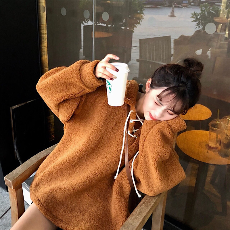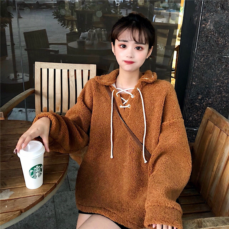 / 2018新款秋冬女裝韓版寬松仿羊羔毛套頭pp home超火衛衣上衣外套