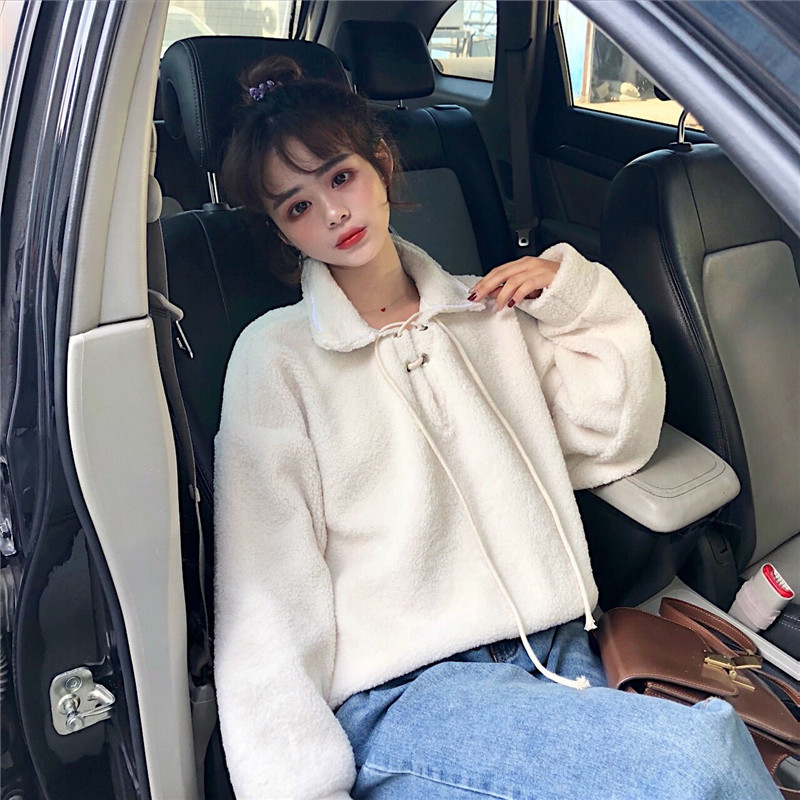 2018新款秋冬女裝韓版寬松仿羊羔毛套頭pp home超火衛衣上衣外套