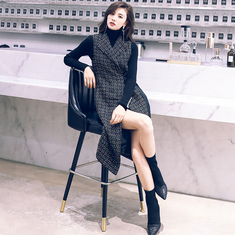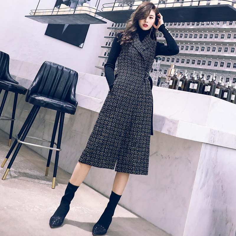2018秋冬新款格子馬甲女中長款韓版毛呢西裝背心坎肩冬季馬夾外套