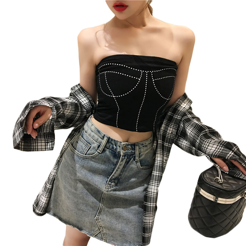 / 韓版秋裝女2018新款無袖背心百搭一字肩印花抹胸性感裹胸內搭上衣