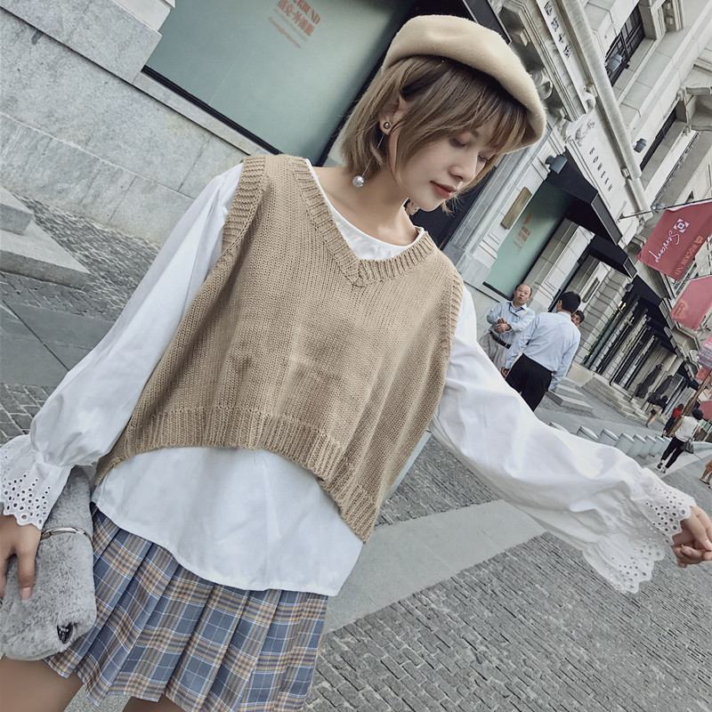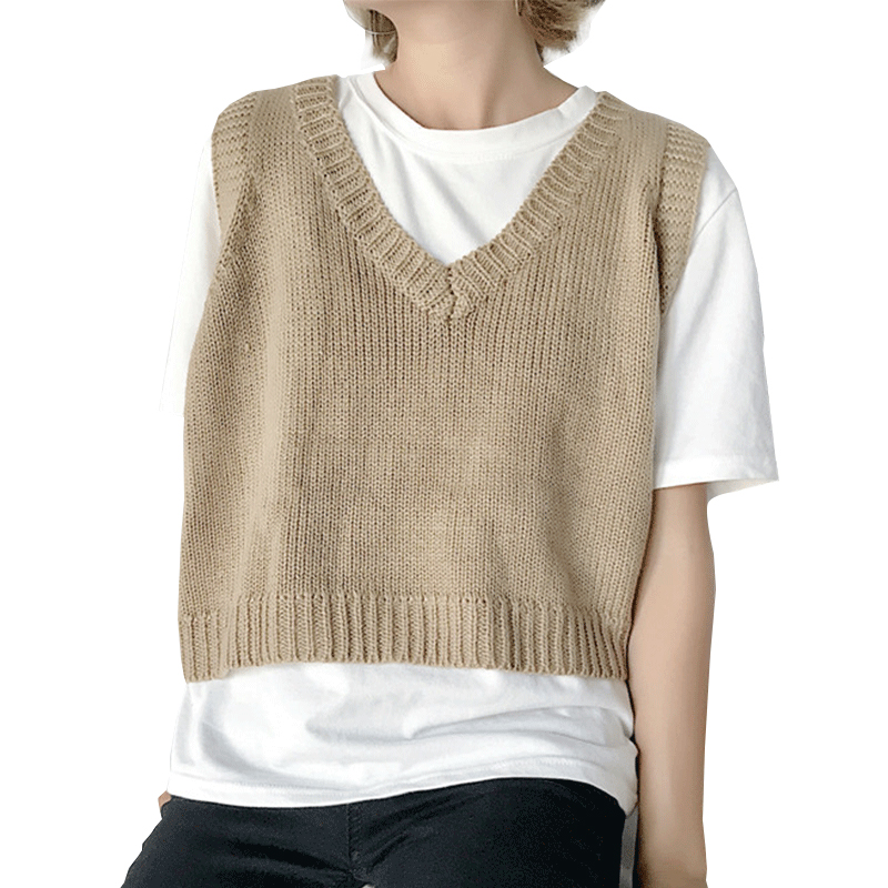 秋季新款女裝寬松顯瘦百搭套頭短款無袖外穿針織毛衣背心坎肩馬甲