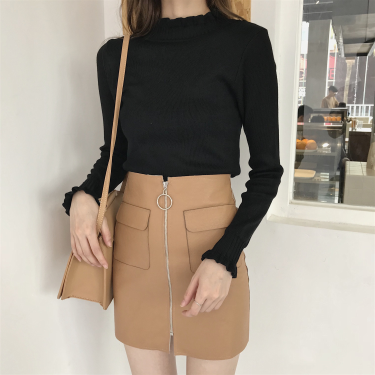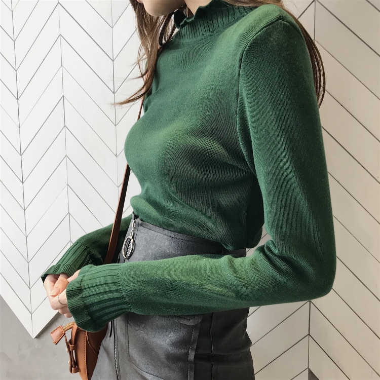 秋季2018新款韓版半高領慵懶風修身顯瘦網紅套頭毛衣針織衫上衣女