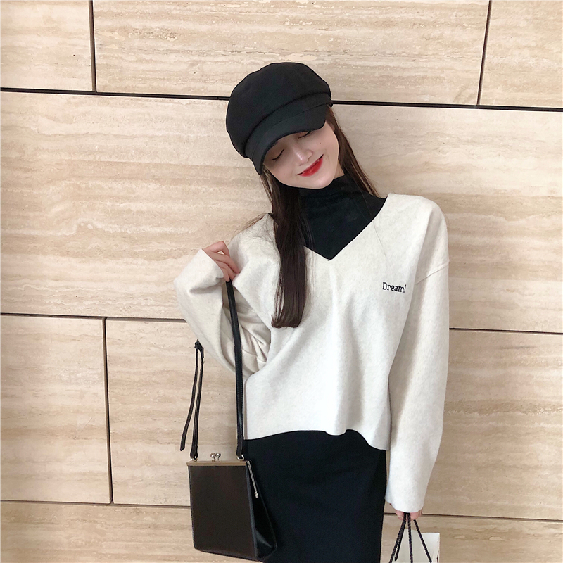 新款韓版毛呢套頭上衣高領背心彈力連衣裙女兩件套時尚套裝女裝潮