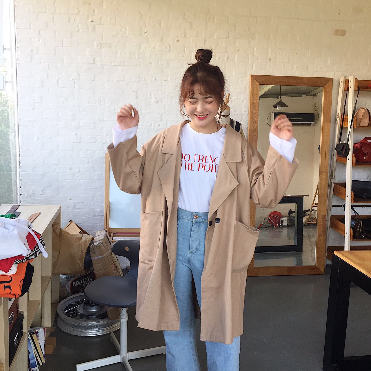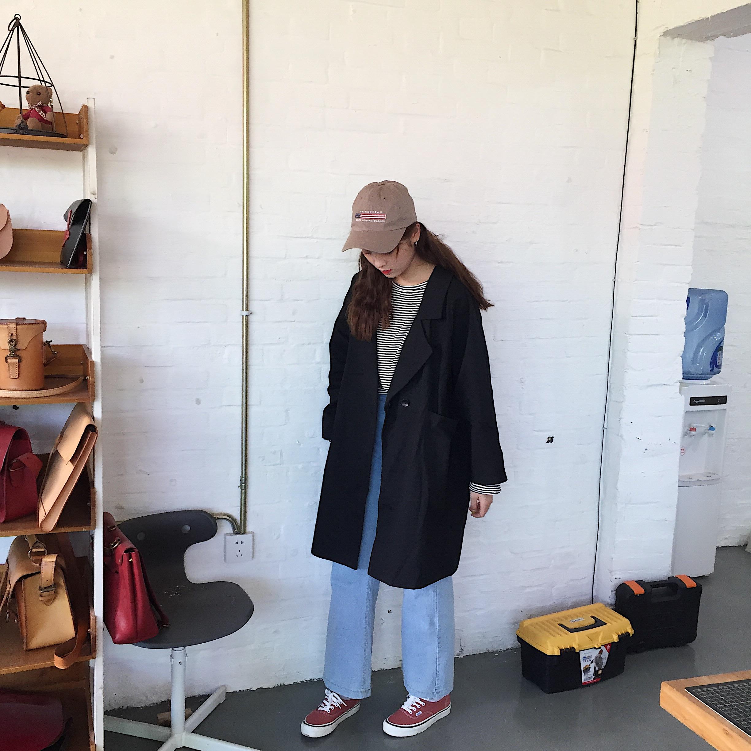 / 秋裝女裝韓版寬松百搭長袖風衣學生中長款休閑顯瘦開衫上衣外套潮