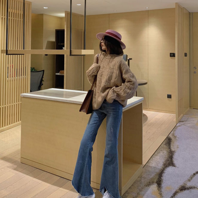 / 復古氣質喇叭褲高腰顯瘦不規則牛仔褲女春秋2018新款韓版學生長褲