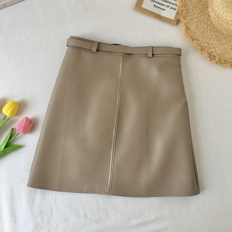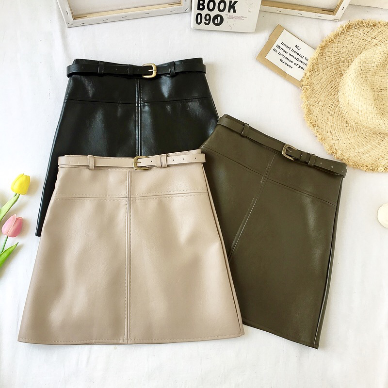 / 韓版PU皮時尚黑色半身裙子女秋冬裝新款學生復古高腰顯瘦A字短裙