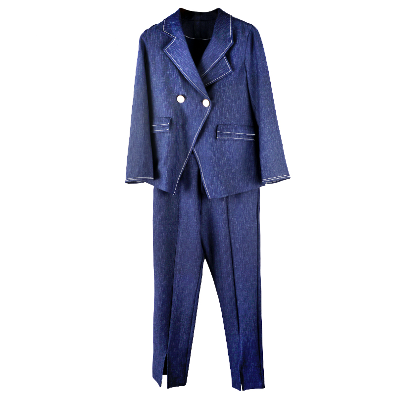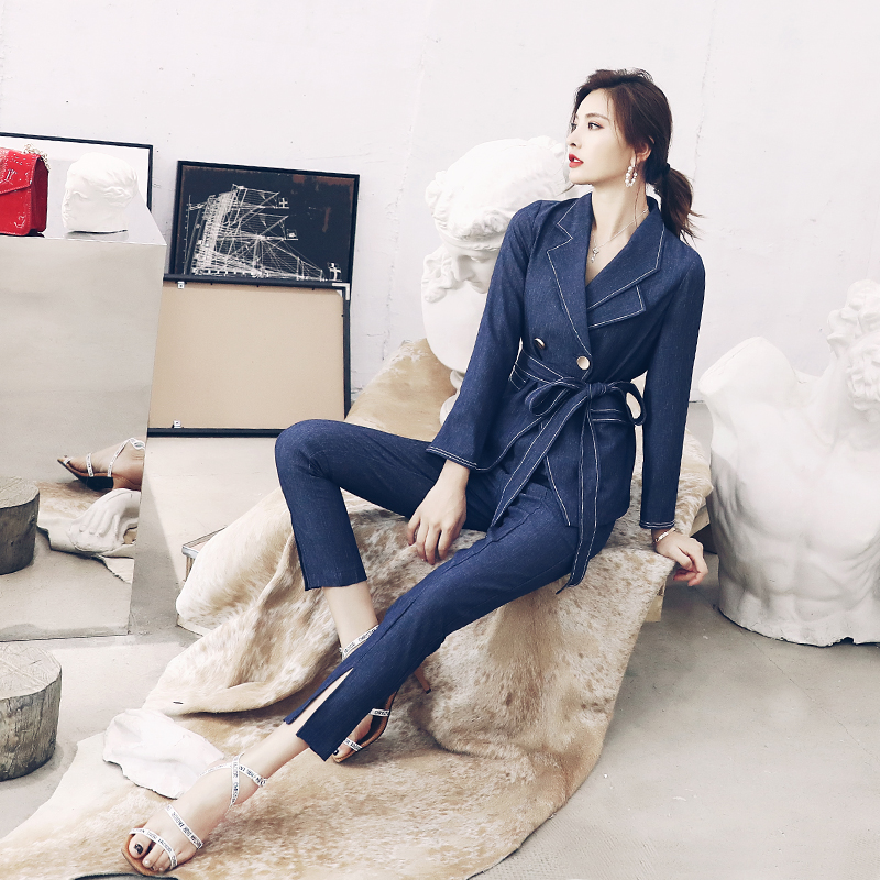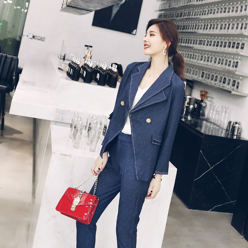 S秀2018夏季新款時尚氣質兩件套顯瘦西裝領上衣女職業休閑套裝女