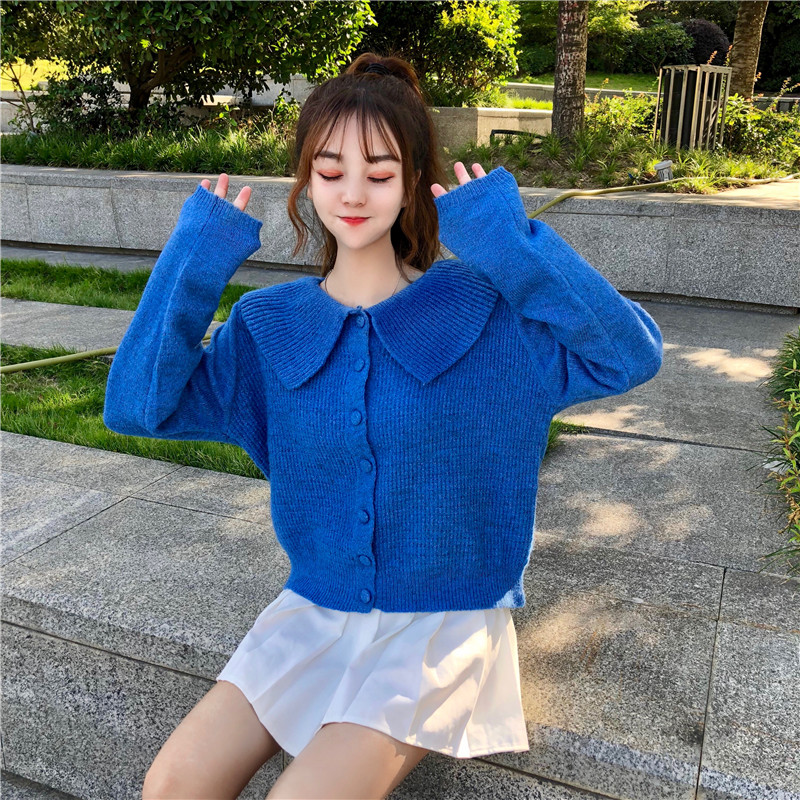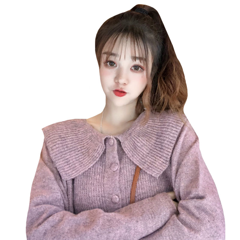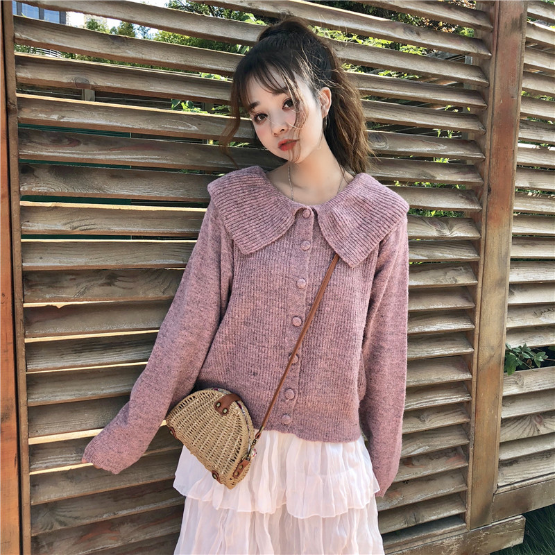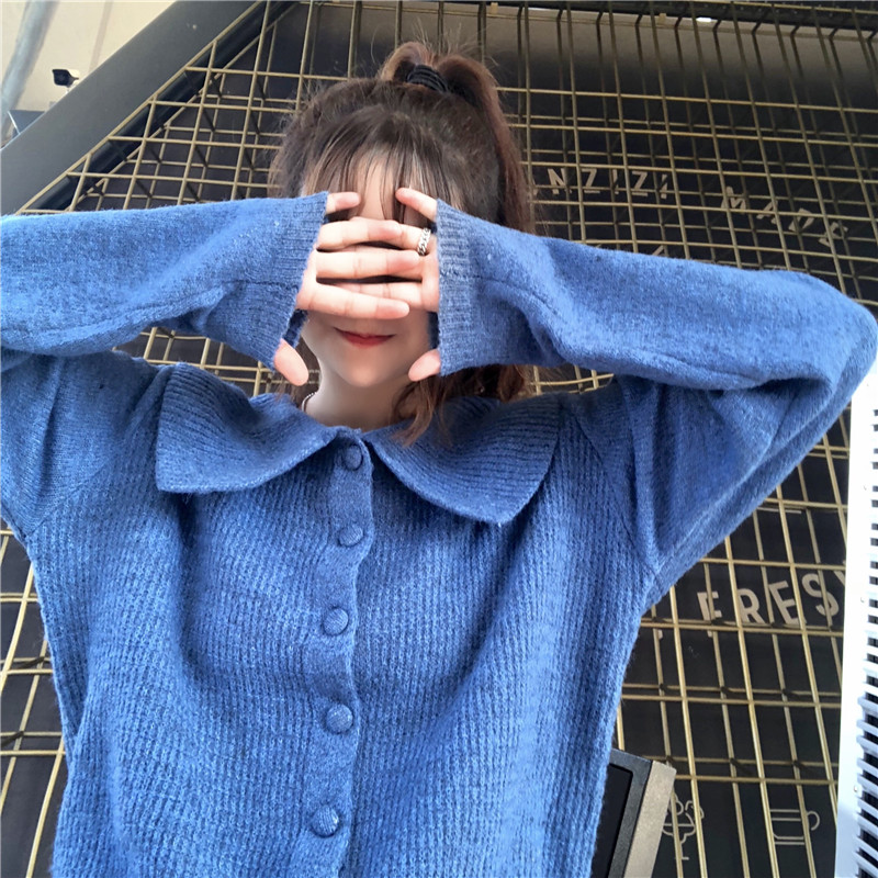 / 秋冬韓版慵懶風甜美娃娃領寬松厚實網紅毛衣針織衫開衫上衣外套女