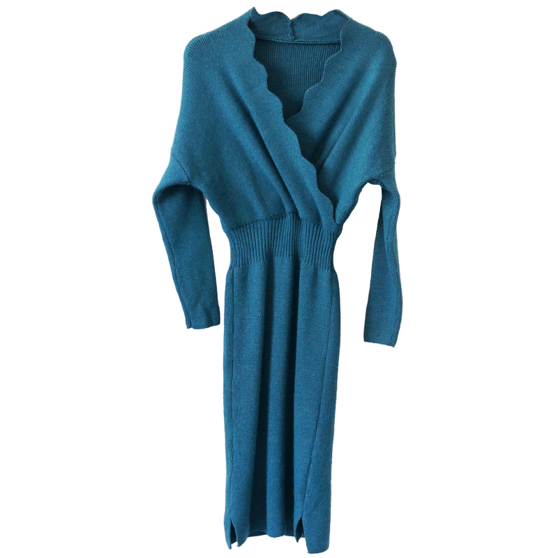 名媛氣質針織連衣裙秋冬2018新款女修身裙收腰顯瘦打底毛衣裙子潮