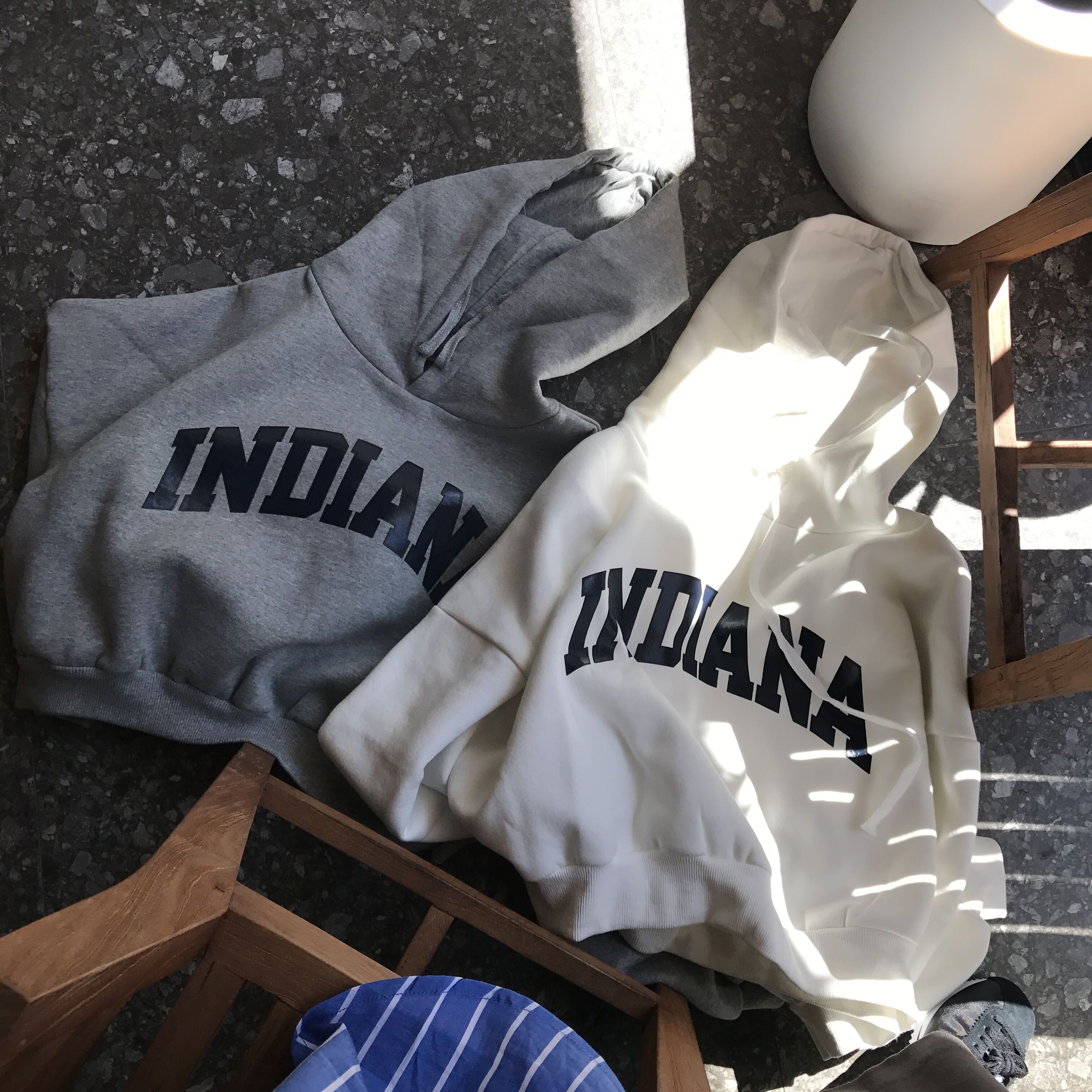 / 韓版chic早秋上衣慵懶衛衣女秋短款字母連帽加絨衛衣外套加厚帽衫