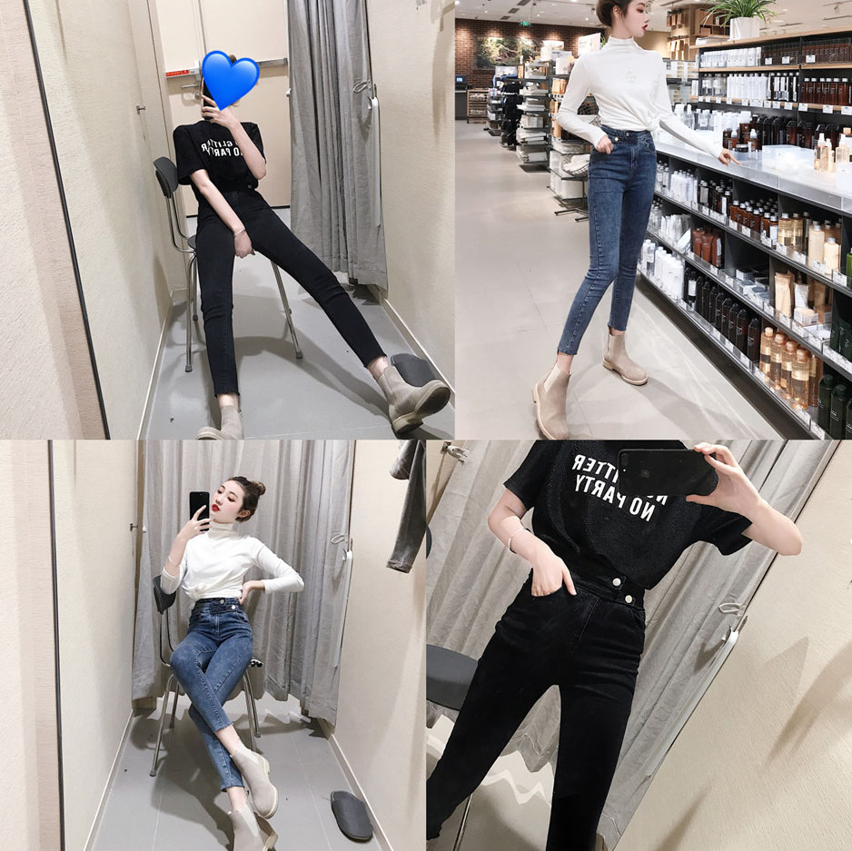 / 港味復古chic風秋冬褲子高腰彈力牛仔鉛筆褲緊身小腳褲百搭長褲潮