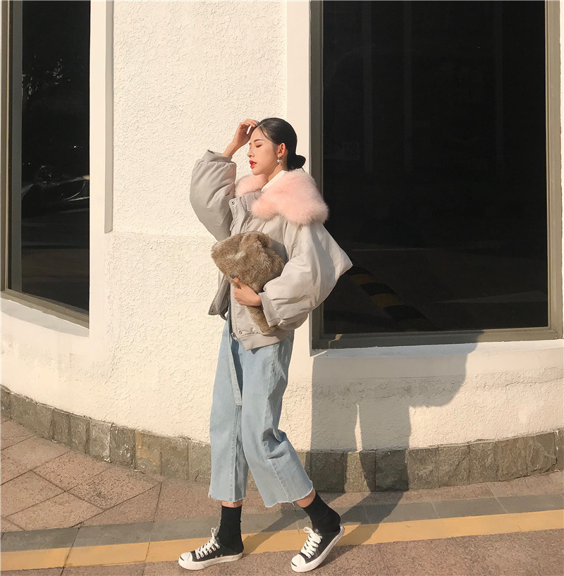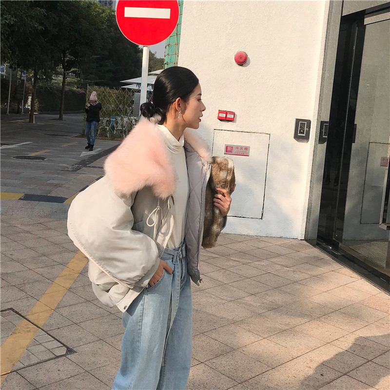 / 2018秋冬新款韓版時尚大衣保暖寬松chic氣質女裝毛領加厚棉服外套
