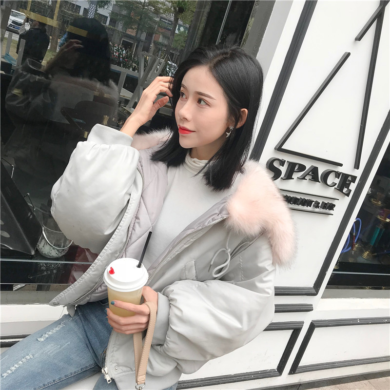 2018秋冬新款韓版時尚大衣保暖寬松chic氣質女裝毛領加厚棉服外套