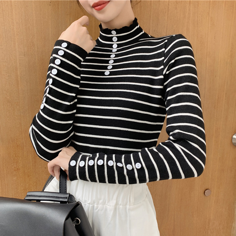 時尚條紋上衣修身顯瘦打底針織衫女秋冬裝新款小高領外穿套頭毛衣