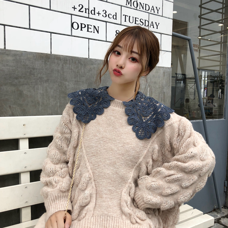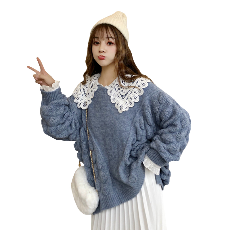 韓版時尚休閑套裝秋季寬松針織毛衣外套+花邊襯衣+百褶裙三件套女