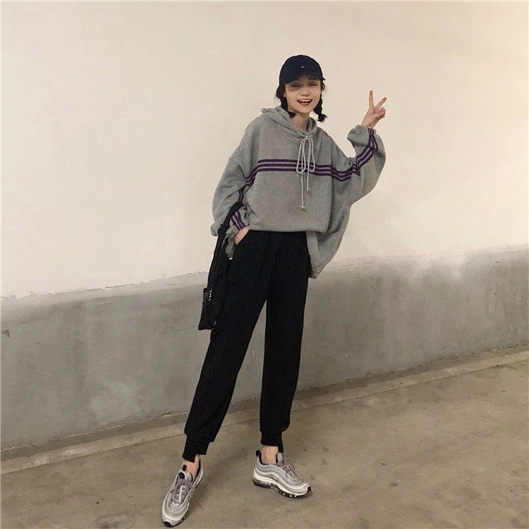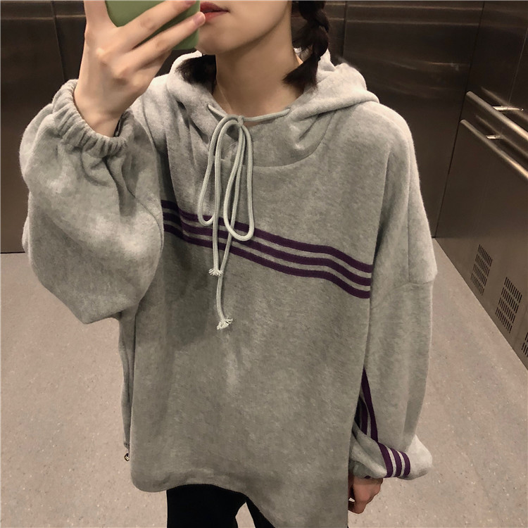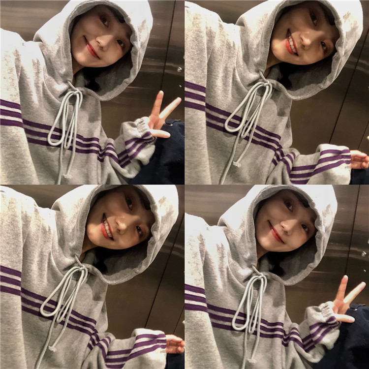 / 秋季2018新款韓版灰色絨面慵懶風連帽寬松pp home超火衛衣外套女