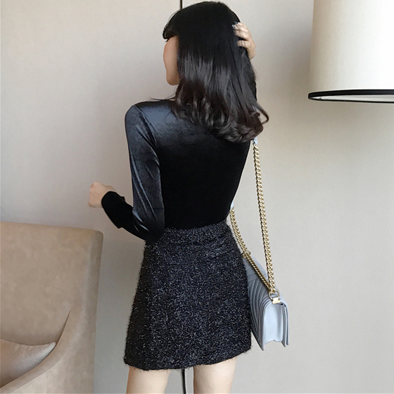 晚晚風套裝女秋裝2018新款亮絲不規則半身A字裙子修身絲絨打底衫