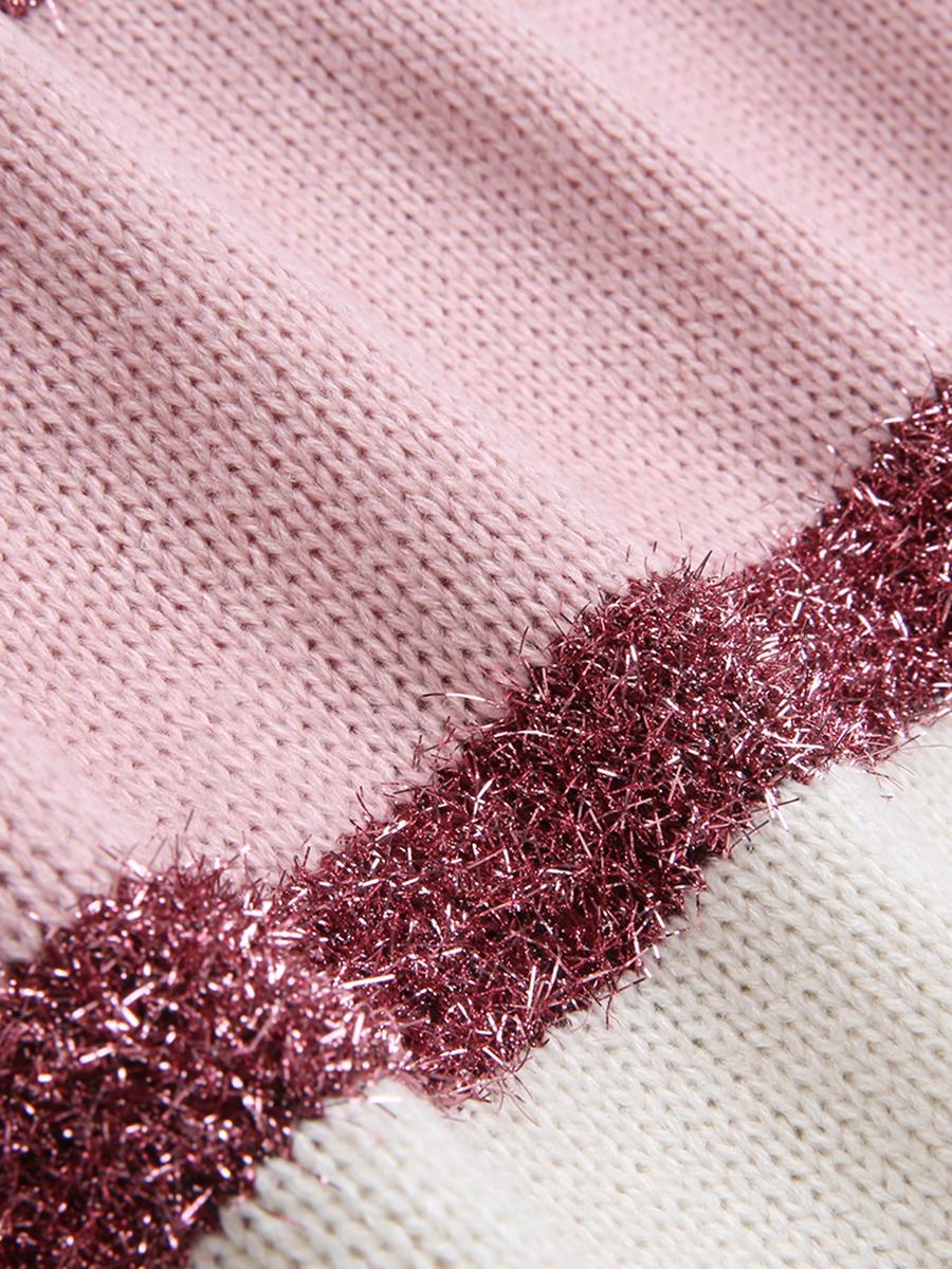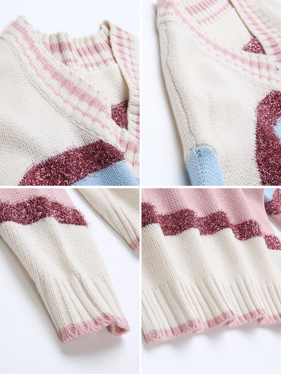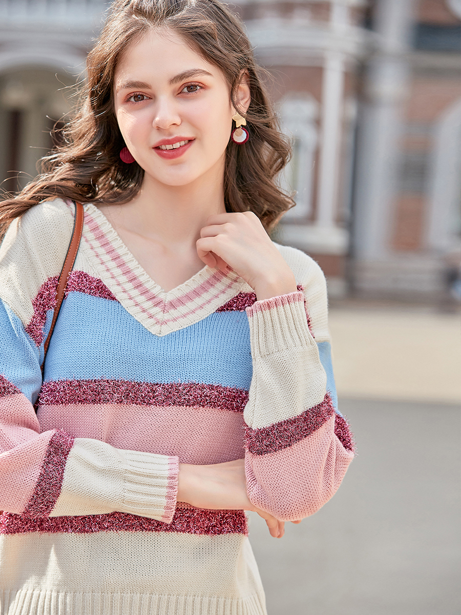 MG小象亮絲條紋毛衣女2018新款v領套頭上衣冬季寬松針織毛線衣潮