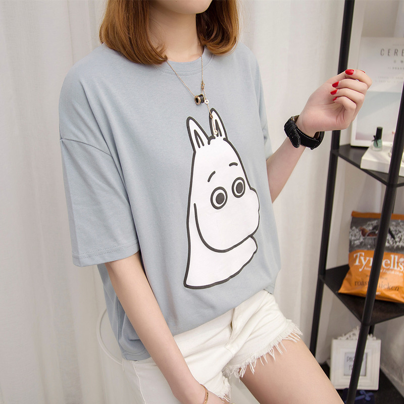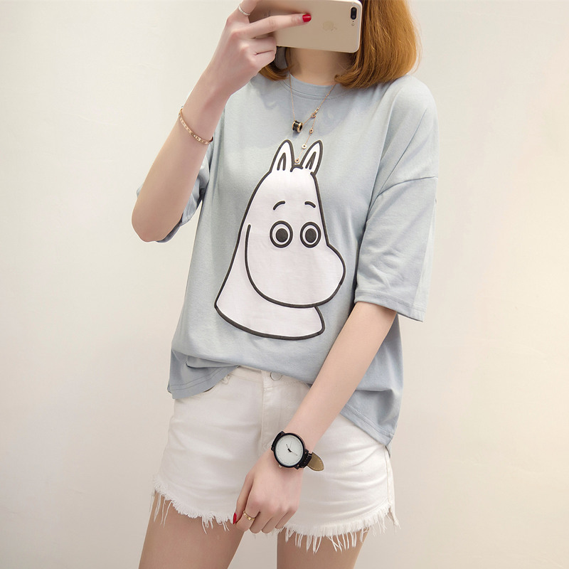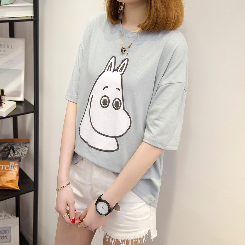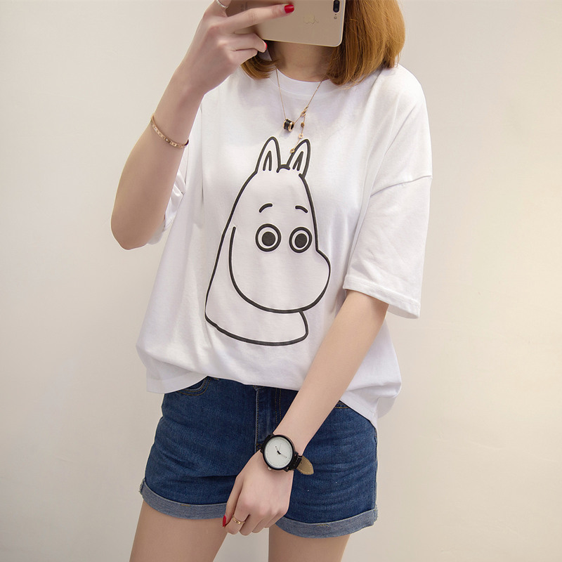 / 夏裝新款女裝韓版寬松簡約t恤女短袖卡通上衣女夏百搭體恤衫