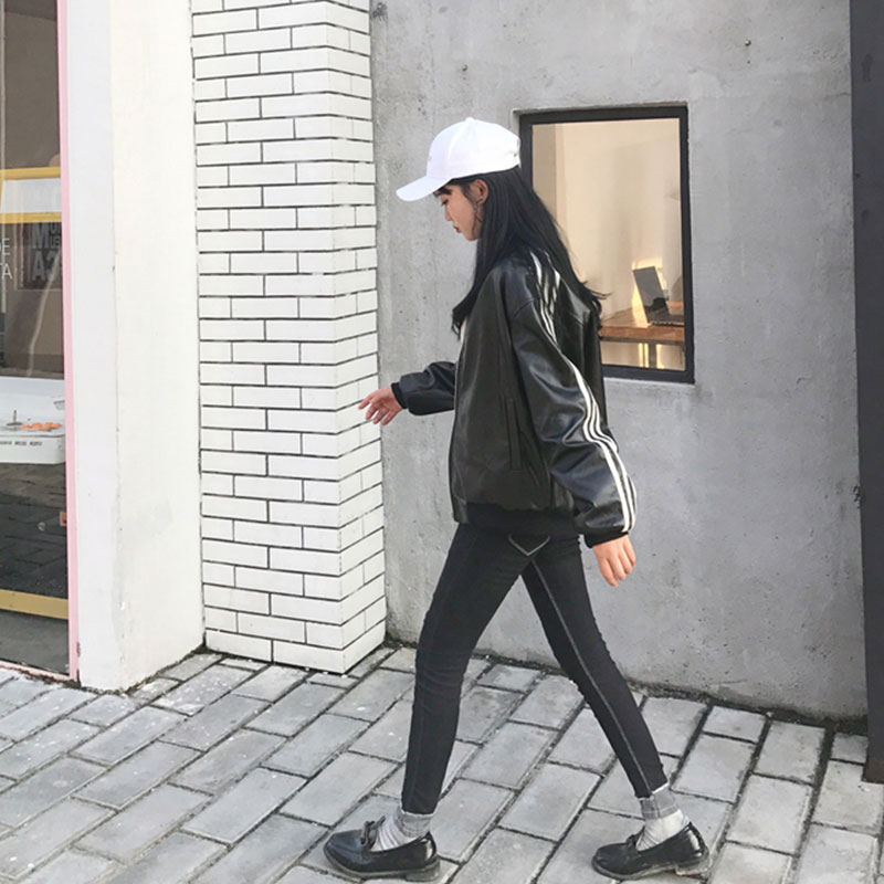 / 外套秋女2018新款休閑夾克女套百搭皮衣女生韓版寬松棒球服情侶裝