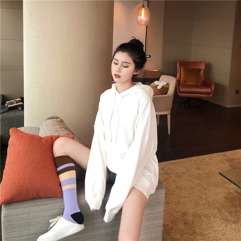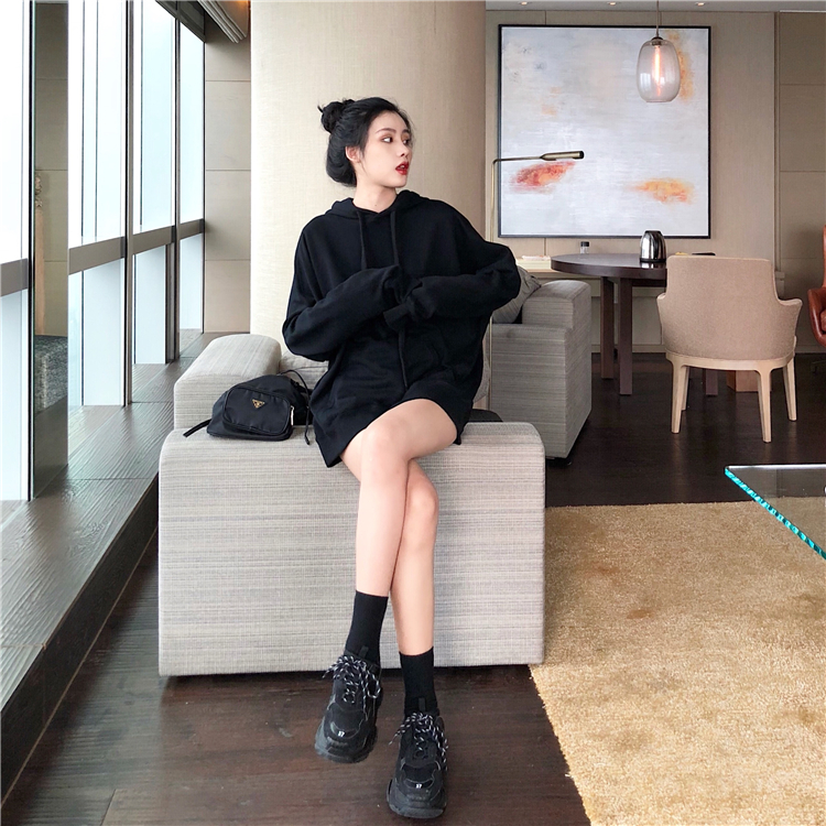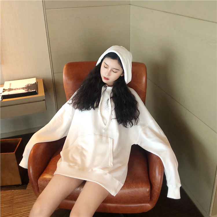 款式是簡單下垂肩線和寬松的Oversized遮臀設計衛衣袖子也是故意做長些 可以把手縮在里面的那種