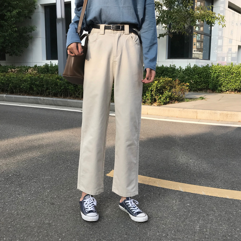 / 秋季女裝韓版松緊腰寬松復古休閑褲工裝褲子高腰直筒褲闊腿褲長褲