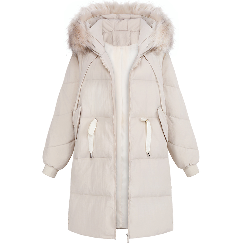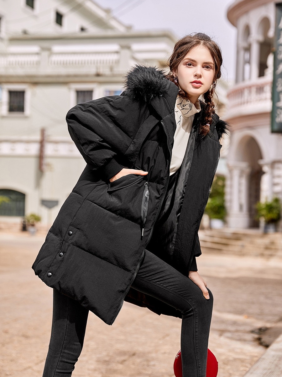 MG小象寬松休閑棉衣女中長款冬季毛領外套2018新款加厚學生面包服