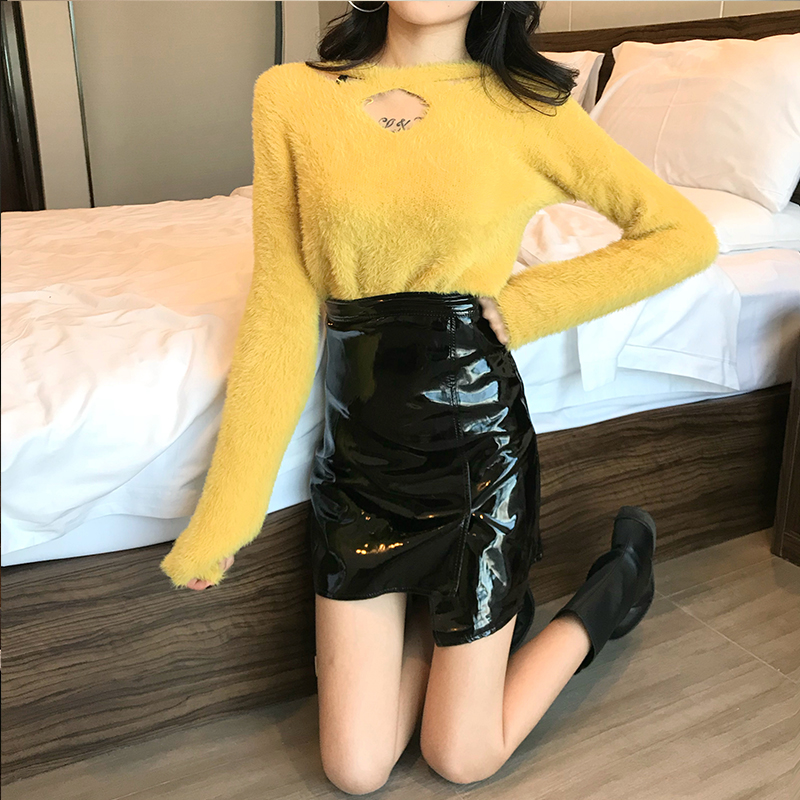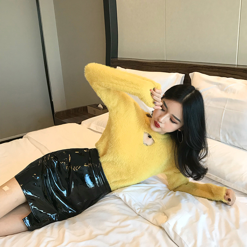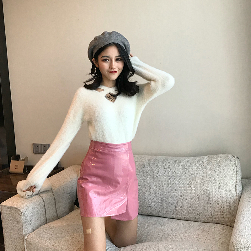 秋冬新款韓版長袖加厚保暖時尚純色上衣女百搭領口交叉設計感毛衣