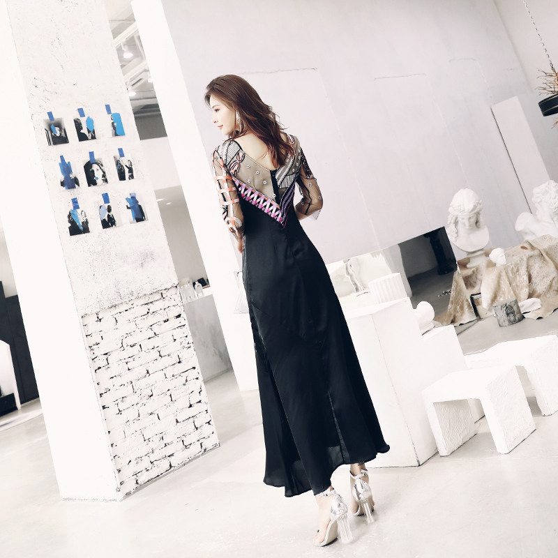S秀2018新款英倫風百搭繡花印花慵懶風顯瘦圓領五分袖連衣裙