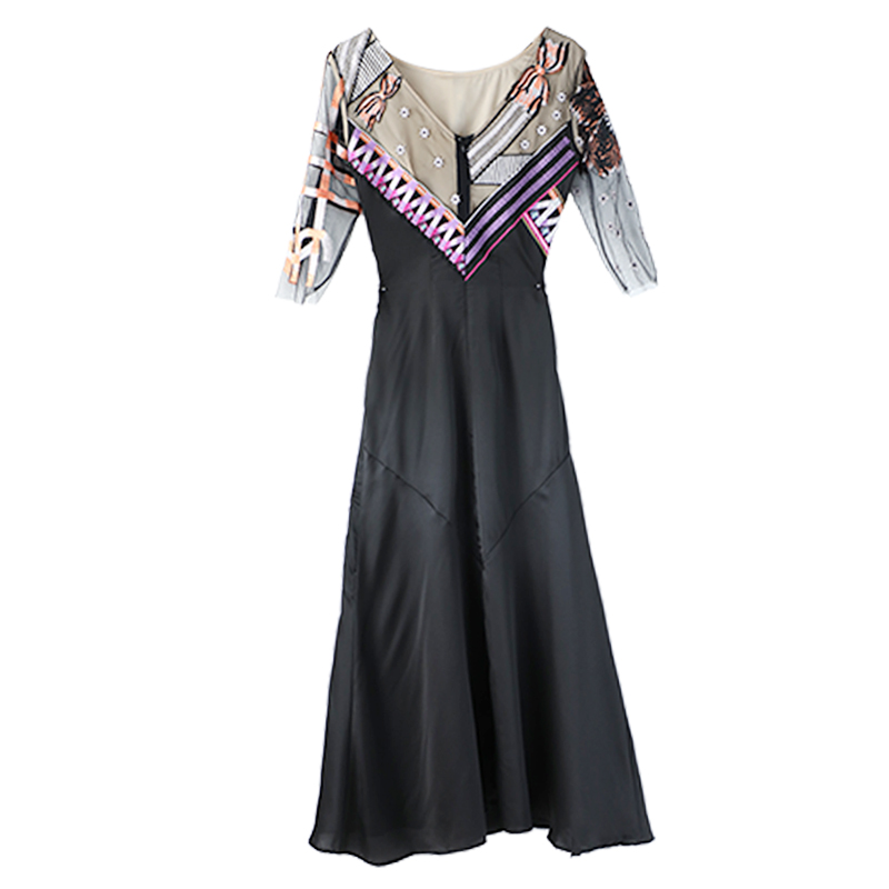 / S秀2018新款英倫風百搭繡花印花慵懶風顯瘦圓領五分袖連衣裙