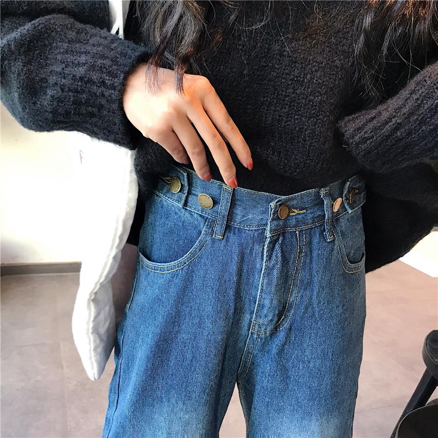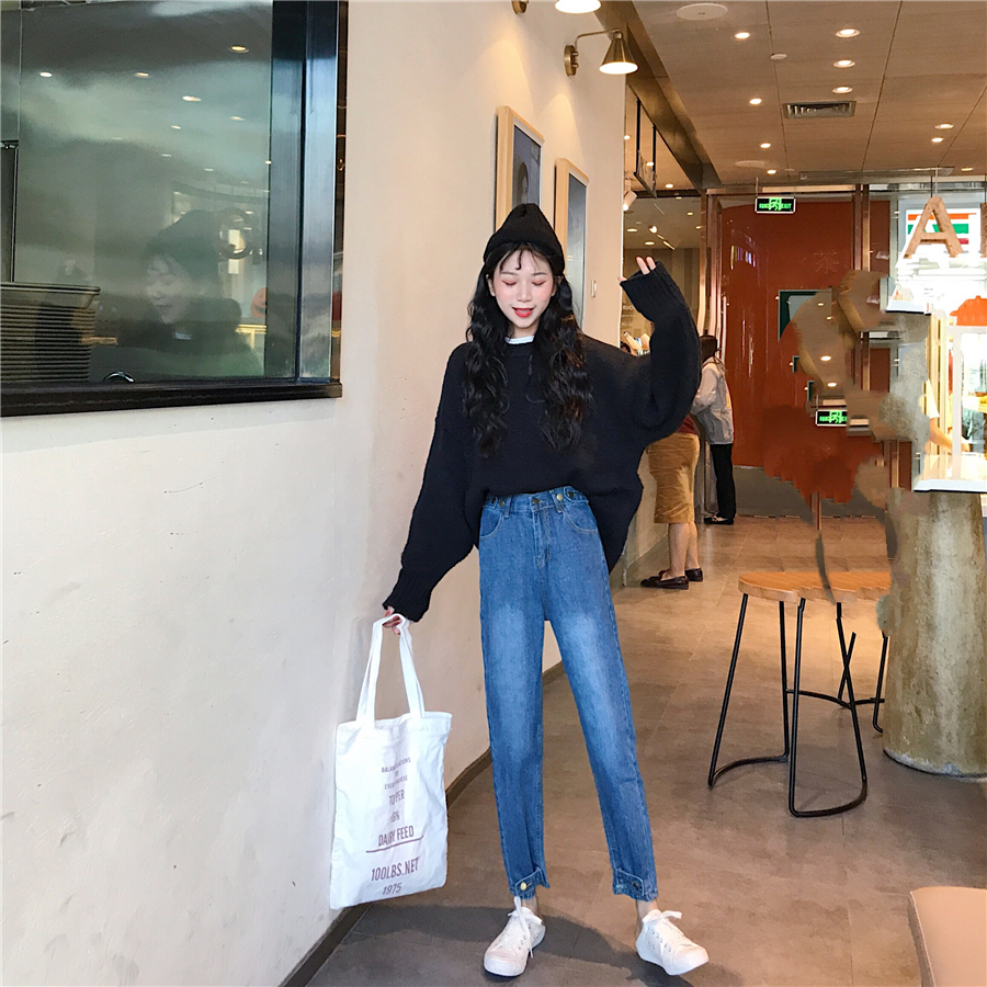 / 秋冬韓版寬松百搭牛仔褲高腰顯瘦個性褲口直筒褲九分褲學生褲子女