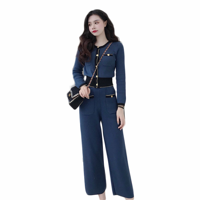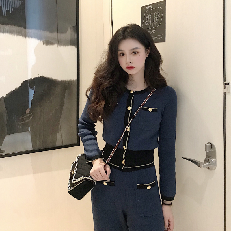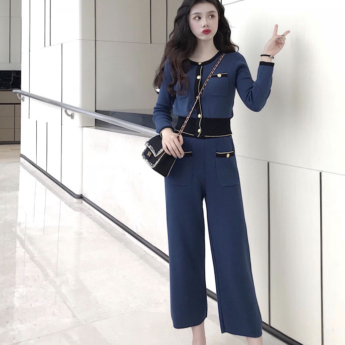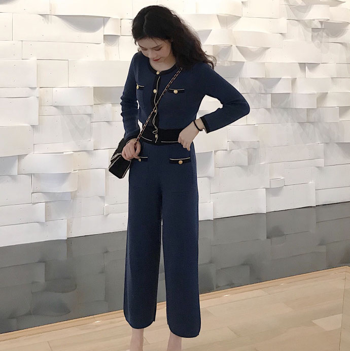 / 針織套裝女秋冬2018新款長袖外套開衫上衣女+百搭闊腿長褲兩件套
