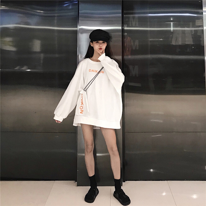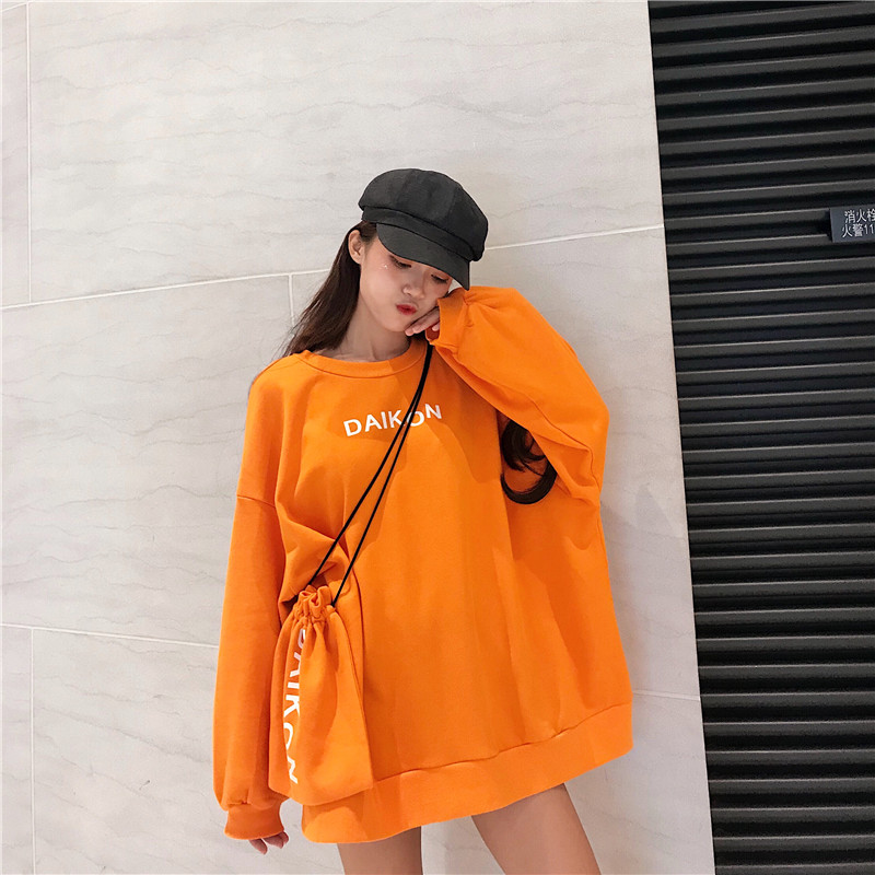/ 秋季2018新款韓版中長款BF風寬松字母pp home超火衛衣外套+包包女