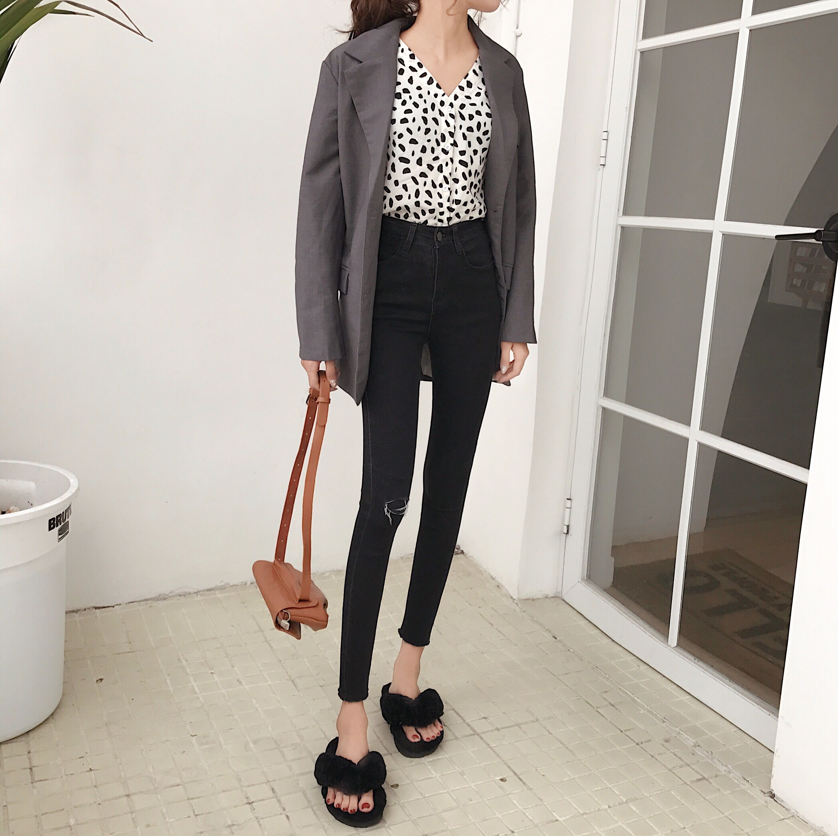 / 韓國高腰chic破洞牛仔褲女秋冬2018新款彈力顯瘦修身小腳鉛筆褲潮
