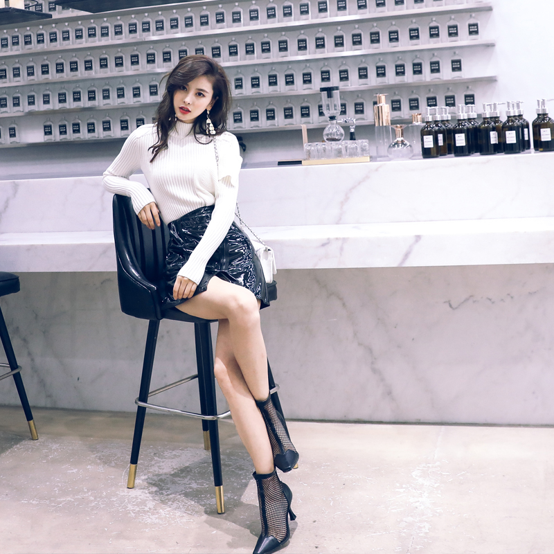 名媛氣質2018秋冬季女裝網紅女神時尚毛衣性感亮皮裙套裝女兩件套