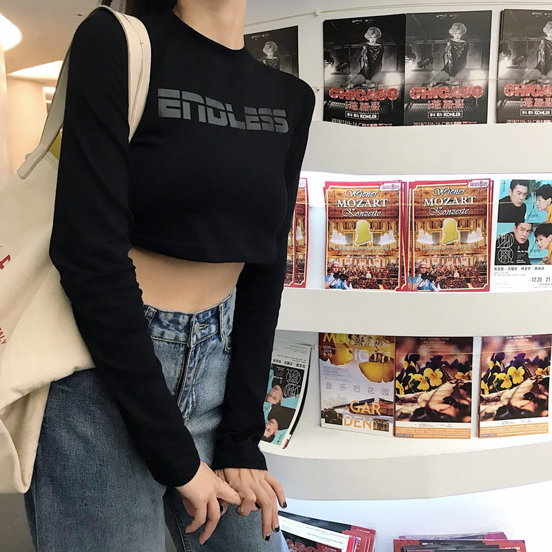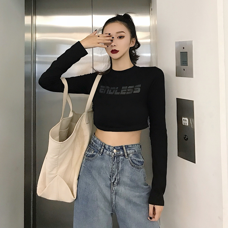 / 秋冬新款港風字母印花時尚百搭chic修身顯瘦長袖打底T恤衫閨蜜裝