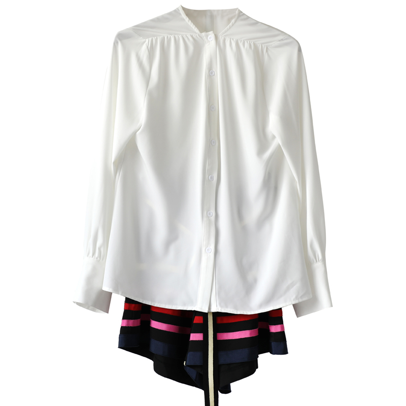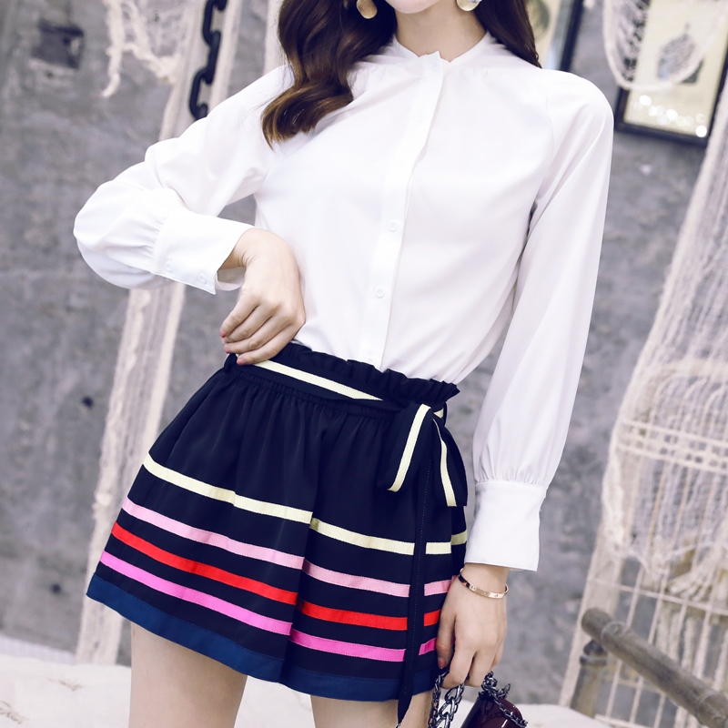 / 韓版小清新俏皮網紅套裝2018新款高腰闊腿短褲白色長袖襯衫兩件套