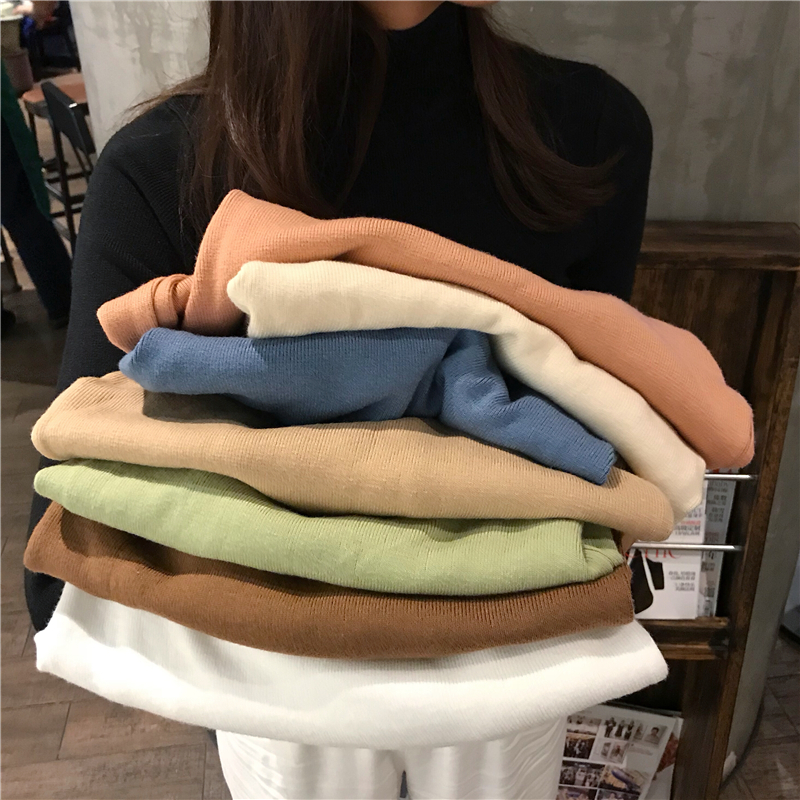 韓版秋冬基礎款慵懶風毛衣女套頭半高領針織打底衫內搭長袖上衣潮