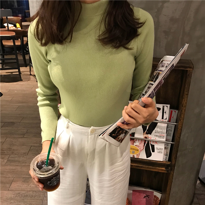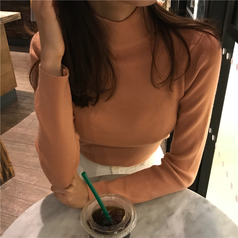 / 韓版chic慵懶風毛衣女2018新款秋半高領修身套頭打底衫針織衫上衣
