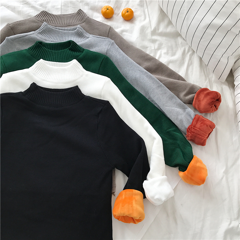 / 秋冬韓版小高領加絨加厚保暖修身套頭針織衫打底衫毛衣上衣外套女